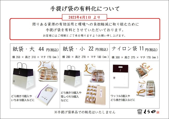 ※手提げ袋のみの単品販売はいたしません